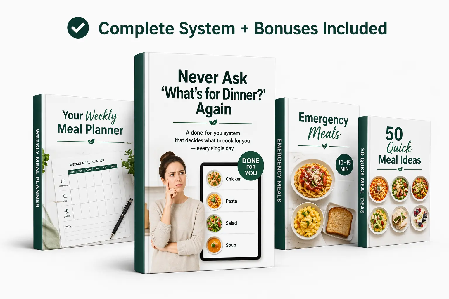 - ✅ 3 Powerful Bonuses – planner + 50 meal ideas + emergency meals guide ($12 value)